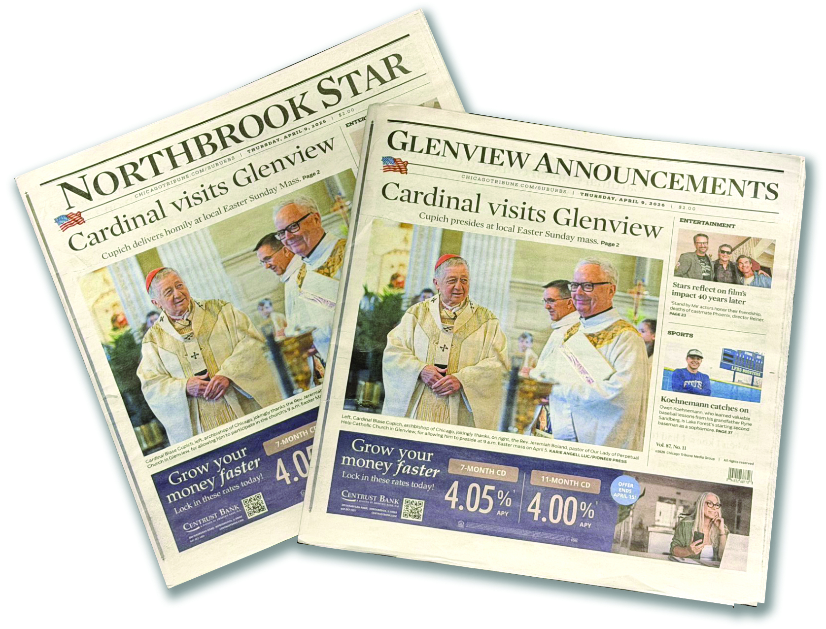 CLICK HERE to read the Chicago Tribune article about Cardinal Cupich celebrating Easter Mass 2026 with OLPH, featured on both the cover of the Glenview Announcements and the Northbrook Star.